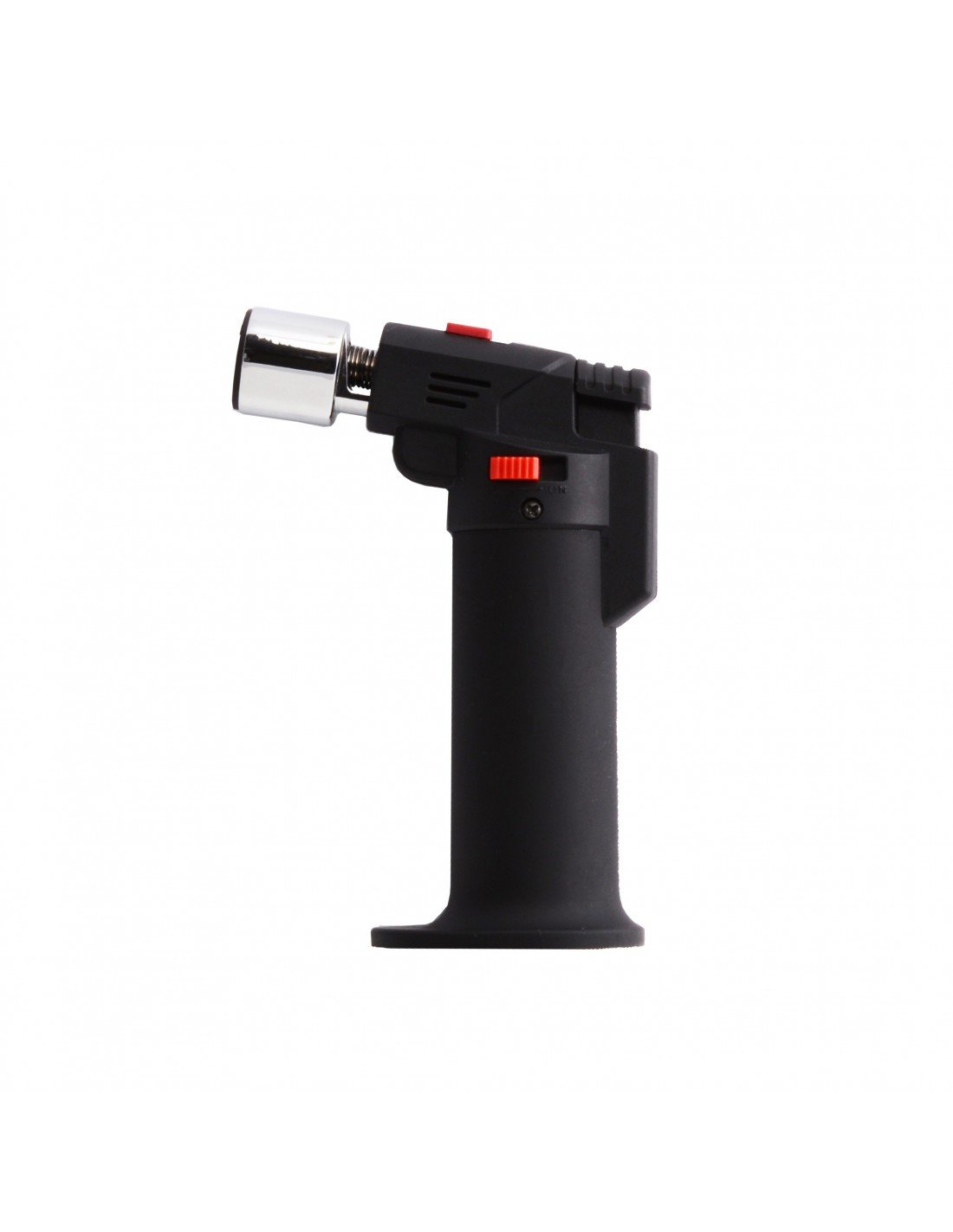 Hochwertiger, moderner Gasbrenner. Mit originalem Ständer. Hergestellt aus schwarzem Kunststoff. Er kann mit Gas nachgefüllt werden.