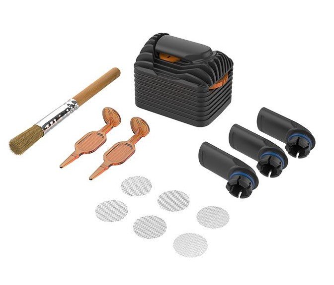 Wenn Sie den Verschleiß proaktiv angehen, verlängern Sie die Lebensdauer Ihres Vaporizers erheblich. Das Wear & Tear Set enthält alle wichtigen Teile, die Sie benötigen, um die VENTY Kühleinheit zu erneuern, darunter Mundstücke, eine Kühleinheit, Siebe, Kammerwerkzeuge und eine Reinigungsbürste.